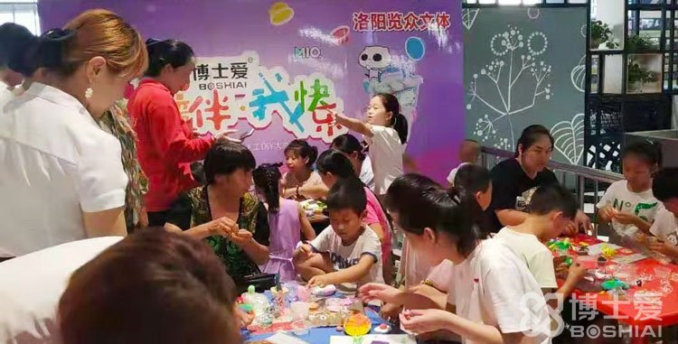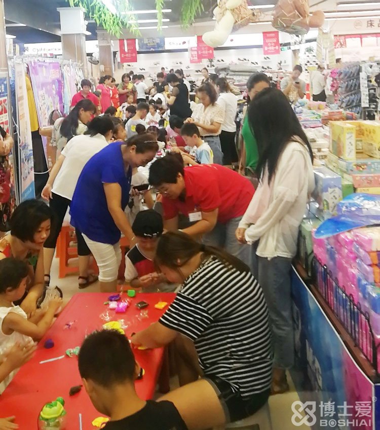 8月10日上午,河南洛陽世紀隆超市里熱鬧非凡,博士愛文具攜手洛陽覽眾商貿(mào)舉行的以“你陪伴我快樂”為主題的超輕粘土手工DIY大賽正在如火如荼的進行中。