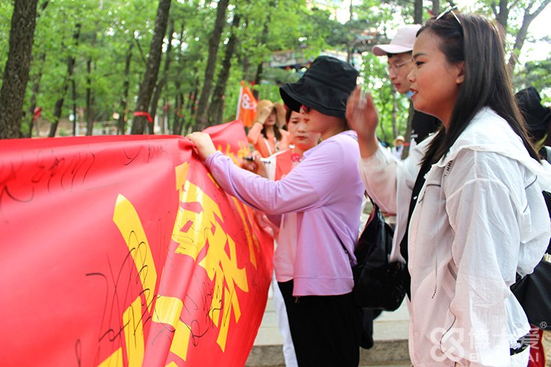 在爬山的過(guò)程中,博士愛(ài)家人們還進(jìn)行了一場(chǎng)登山比賽,大家各顯神通,率先到達(dá)目的地的小伙伴們紛紛在橫幅上簽名留念。
