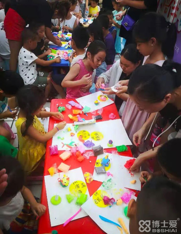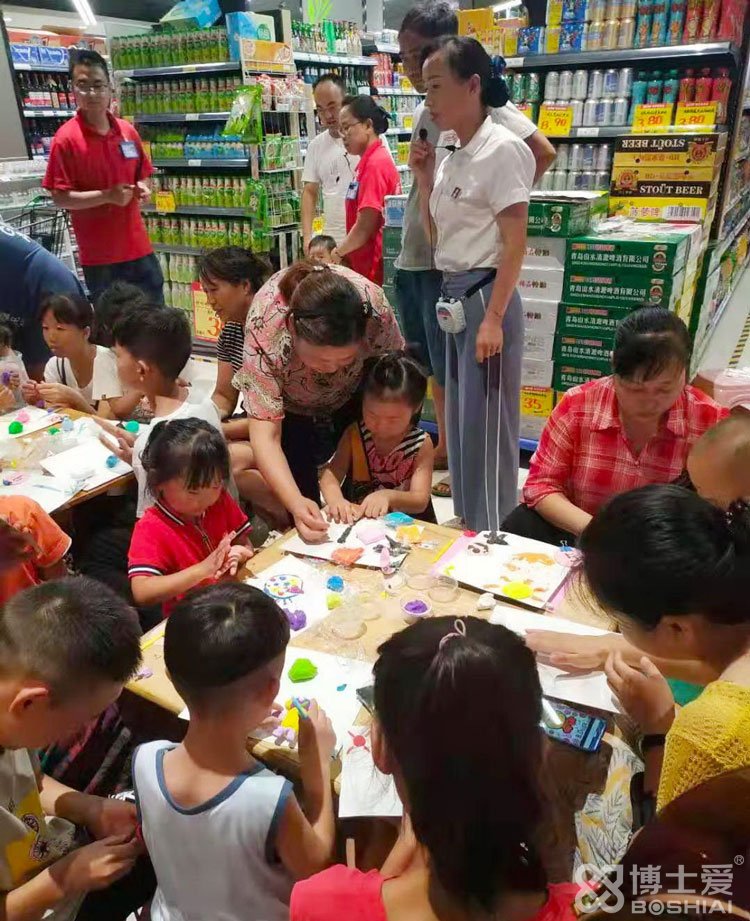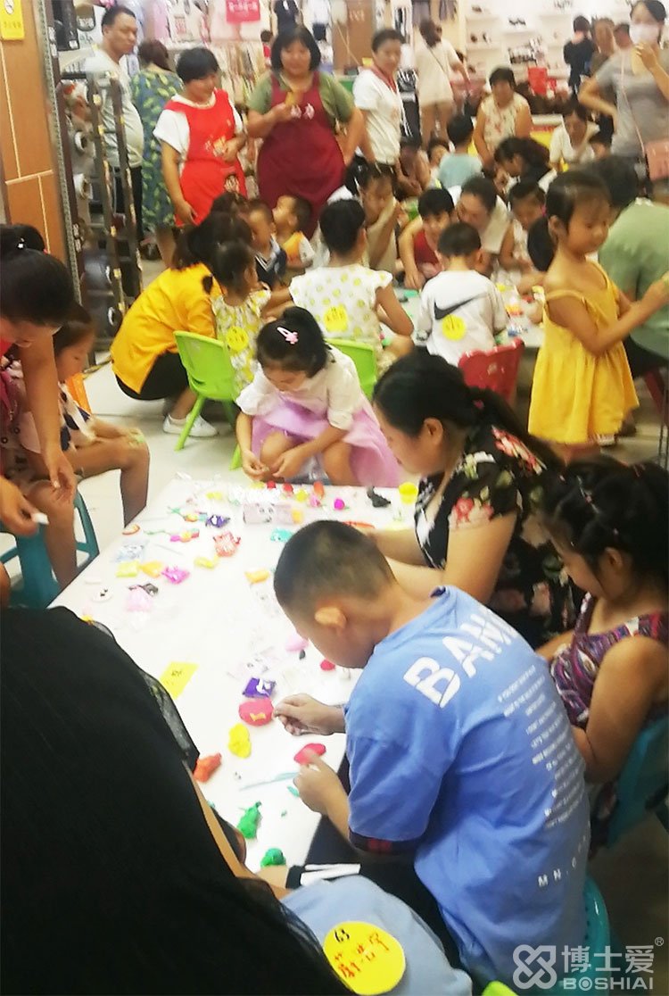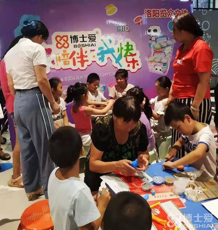 8月10日上午,河南洛陽世紀隆超市里熱鬧非凡,博士愛文具攜手洛陽覽眾商貿(mào)舉行的以“你陪伴我快樂”為主題的超輕粘土手工DIY大賽正在如火如荼的進行中。